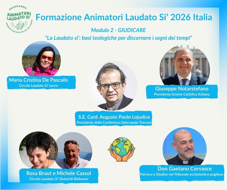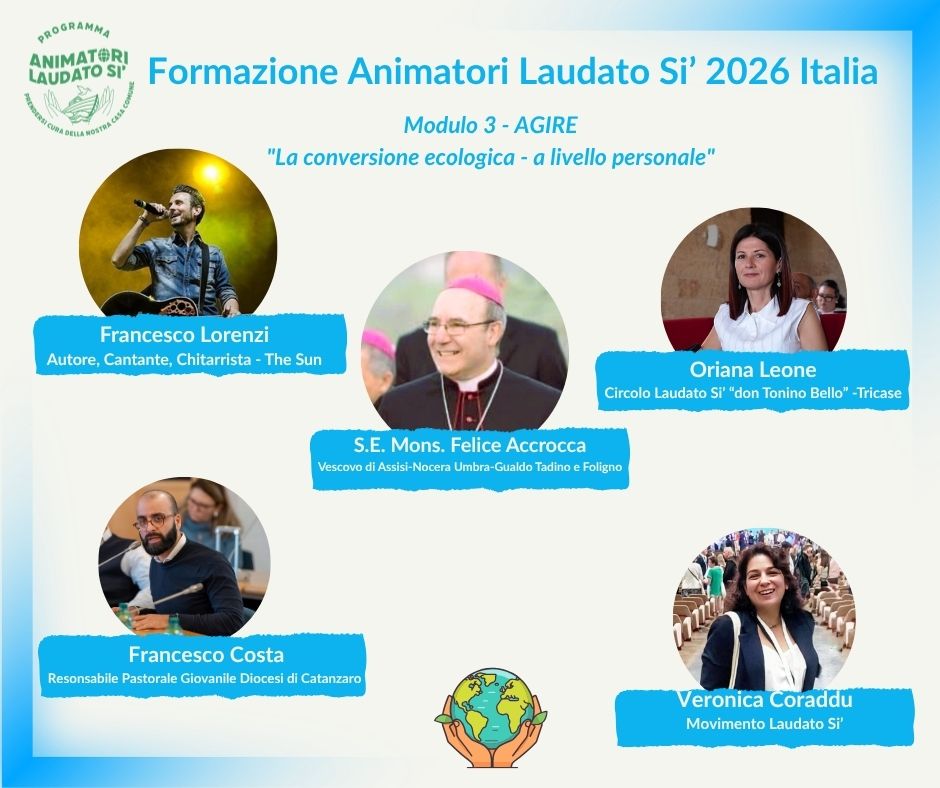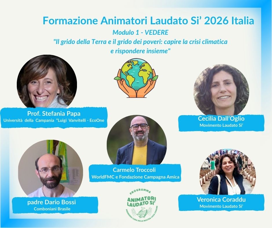 Aperte le iscrizioni all’edizione 2026 della Formazione Animatori Laudato Si’ promossa online dal Movimento Laudato Si’ insieme a 40 organizzazioni partner, tra cui l’Ufficio Nazionale per i problemi sociali e il lavoro della Conferenza Episcopale Italiana, per ispirare e mobilitare la comunità cattolica a camminare insieme nella Cura della nostra casa comune e fare la differenza insieme!