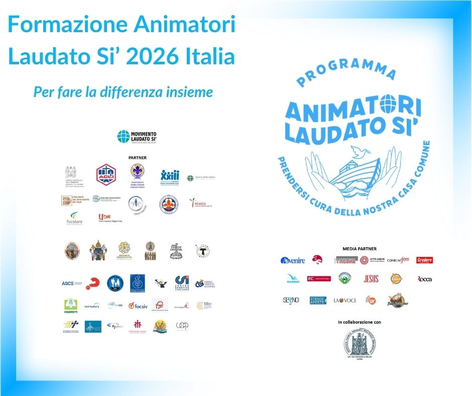 Il Programma Animatori in Italia è promosso insieme a 40 organizzazioni partner tra cui l’Ufficio Nazionale per i Problemi Sociali ed il lavoro della Conferenza Episcopale Italiana, associazioni e movimenti cattolici e congregazioni religiose. Novità del 2026 è la collaborazione con la Pontificia Facoltà teologica dell’Italia Meridionale sez. San Tommaso grazie alla Comunità del Diaconato in Italia, una partnership fondamentale per facilitare un crescente inserimento dell’ecologia integrale nella pastorale ordinaria delle parrocchie e diocesi italiane e la collaborazione con Percorsi di vita appena unitosi