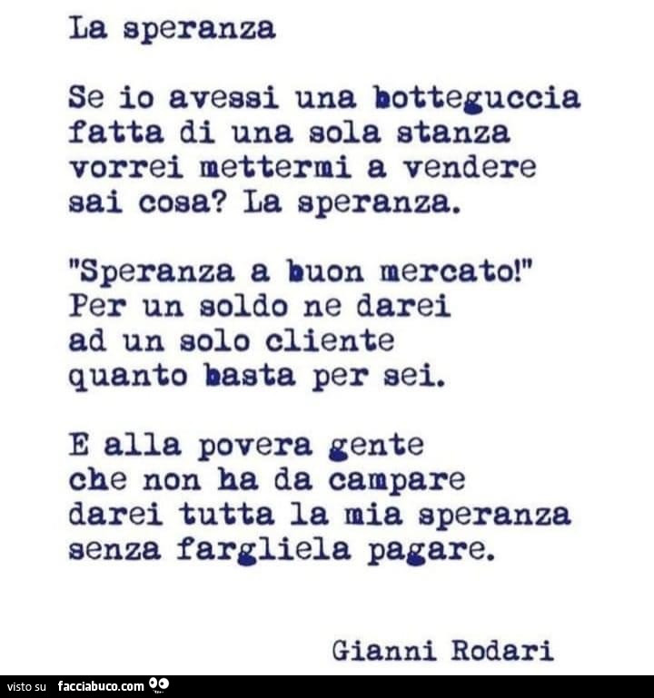 Dico, Rodari poteva ingegnarsi e pensare anche alla botteguccia della pazienza e non solo a quella della speranza.