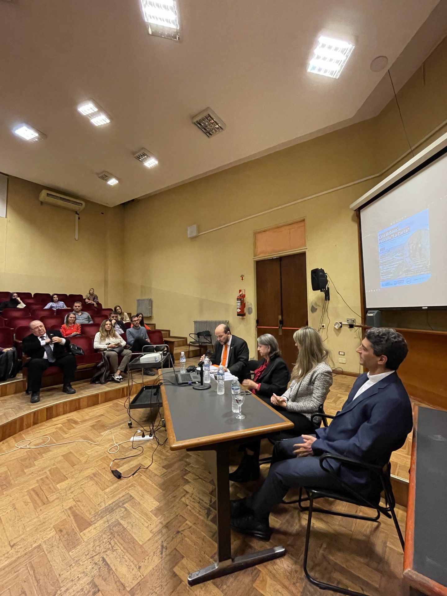 Panelists included Fr. Dr. Augusto Zampini Davies, lawyer, theologian, researcher, former assistant secretary of the Dicastery for Promoting Integral Human Development; Dr. Magalí Giovanelli Petito, specialist in Environmental Law, Energy and Climate Change; and Dr. Nora Gorrochategui, postdoctoral researcher in Economic Sciences.