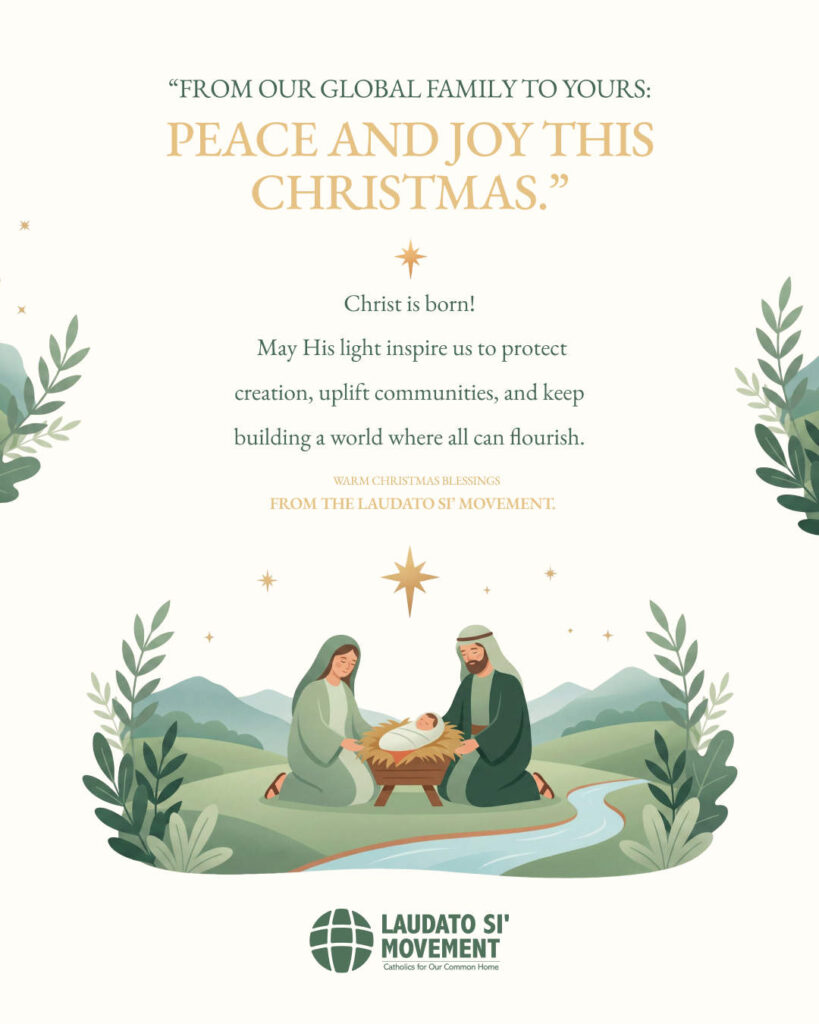 As our global Laudato Si’ family arrives at Christmas after this Advent pilgrimage,we pause at the manger—not as strangers, but as sisters and brothers who have journeyed together with hope in our hearts and creation in our care.