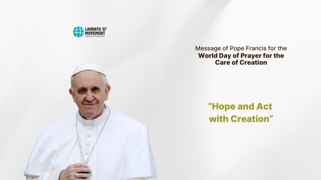 The papal message is entitled “Hope and Act with Creation,” and in it Pope Francis reminds us that “Hoping and acting with creation means first of all joining forces and walking together with all men and women of good will.” In this moment of struggle for our common home, we are united. We join together with our sisters and brothers throughout the world in common purpose.